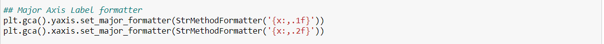 Step:13 Set the resolution of labels in X and Y axis for major axis of the current plot, using the major_formatter function. {X: , .1f} depicts a resolution of one value after decimal point.