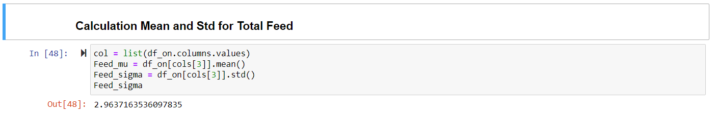 Step:5 The aim is to compute the probability density function as normal distribution. So, computation of Z-score is the preliminary step. Hence compute the mean and Std of the Total_Feed