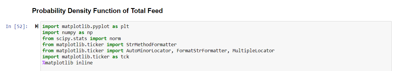 Step:10 Plot the Probability Density Function of Total Feed by calling the pdf function from the norm class under Stats module of Scipy Library.